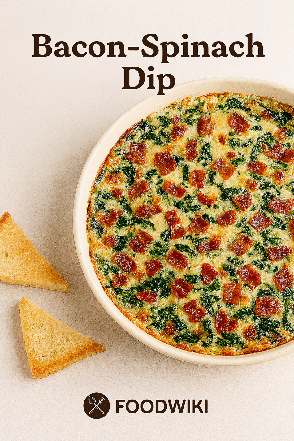 A creamy and savory appetizer featuring fresh spinach and crispy bacon blended into a rich, cheesy dip, perfect for serving with bread, crackers, or vegetables.