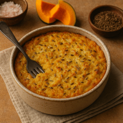 Baked Pumpkin and Potato Mash is a comforting and wholesome dish made with a blend of roasted pumpkin and mashed potatoes, seasoned with herbs and baked until golden. It's creamy, flavorful, and perfect as a healthy side or a light main course, ideal for cozy dinners or festive meals.