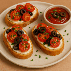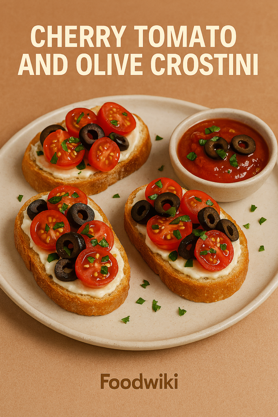 Cherry Tomato and Olive Crostini is a classic Italian appetizer featuring toasted bread slices topped with a fresh, zesty mix of cherry tomatoes, olives, garlic, and herbs. It’s light, flavorful, and perfect for parties or as a starter before meals.