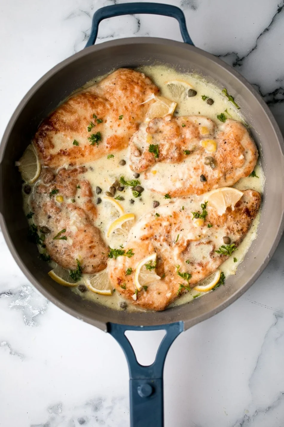 Creamy Lemon Chicken Piccata is a quick and easy 30-minute meal that’s both simple and full of flavor. Tender chicken breasts are lightly floured, seared to golden perfection, and simmered in a silky lemon sauce with capers and garlic for a burst of bright, savory taste. Made in just one skillet, it’s a crowd-pleasing dish that's perfect served over pasta for a satisfying weeknight dinner.