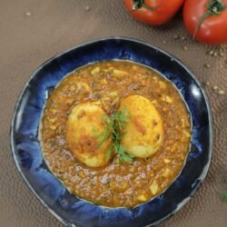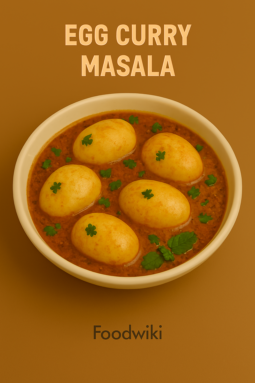 Egg Curry Masala is a flavorful Indian dish made with boiled eggs simmered in a spiced onion-tomato gravy infused with aromatic herbs and masalas. It is a versatile main course that pairs well with steamed rice, roti, or paratha for a comforting meal.