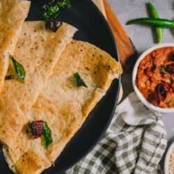 Instant Oats Dosa, Spicy Tomato Chutney