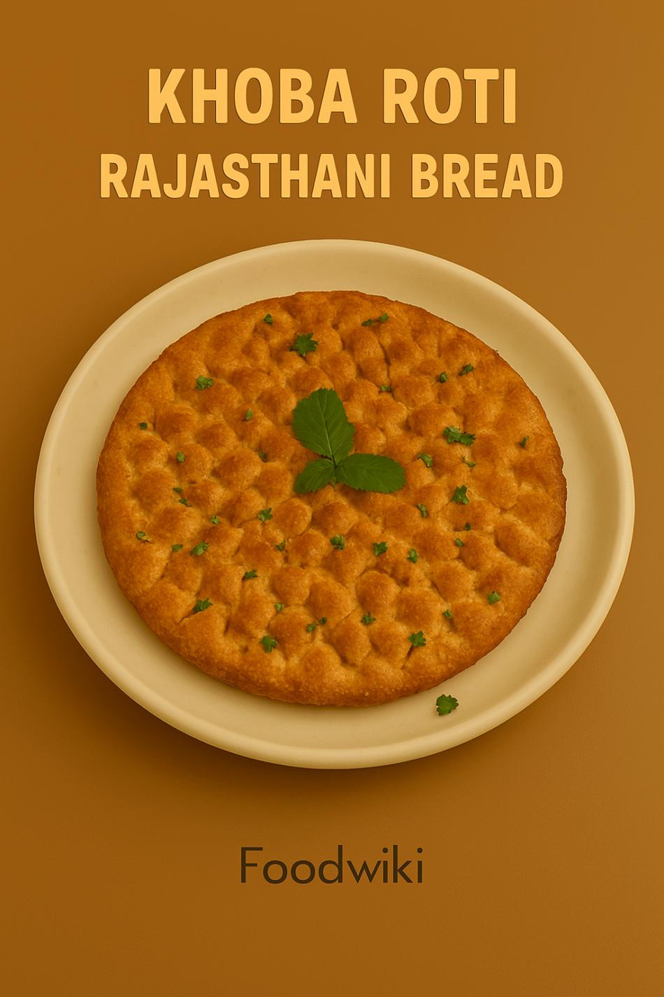 Khoba Roti is a traditional Rajasthani flatbread made from whole wheat flour, featuring deep grooves or patterns (khoba) on its surface. Cooked on a hot tawa, it has a slightly crisp exterior and soft interior, making it perfect to pair with curries, dals, or vegetables.