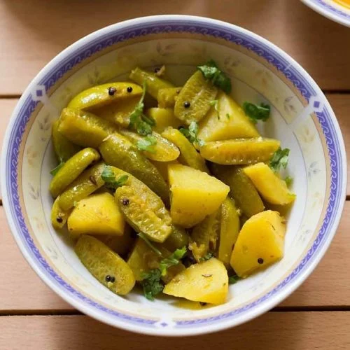 Crafted in the traditional Gujarati fashion, this Kundru ki Sabji or Tendli Bhaji features ivy gourds (known as tendli, kundru, or tindora), potatoes, and a blend of spices and herbs. This Tendli Recipe is free from onions and garlic, making it a gluten-free delight.