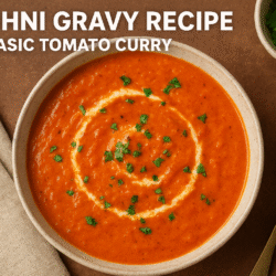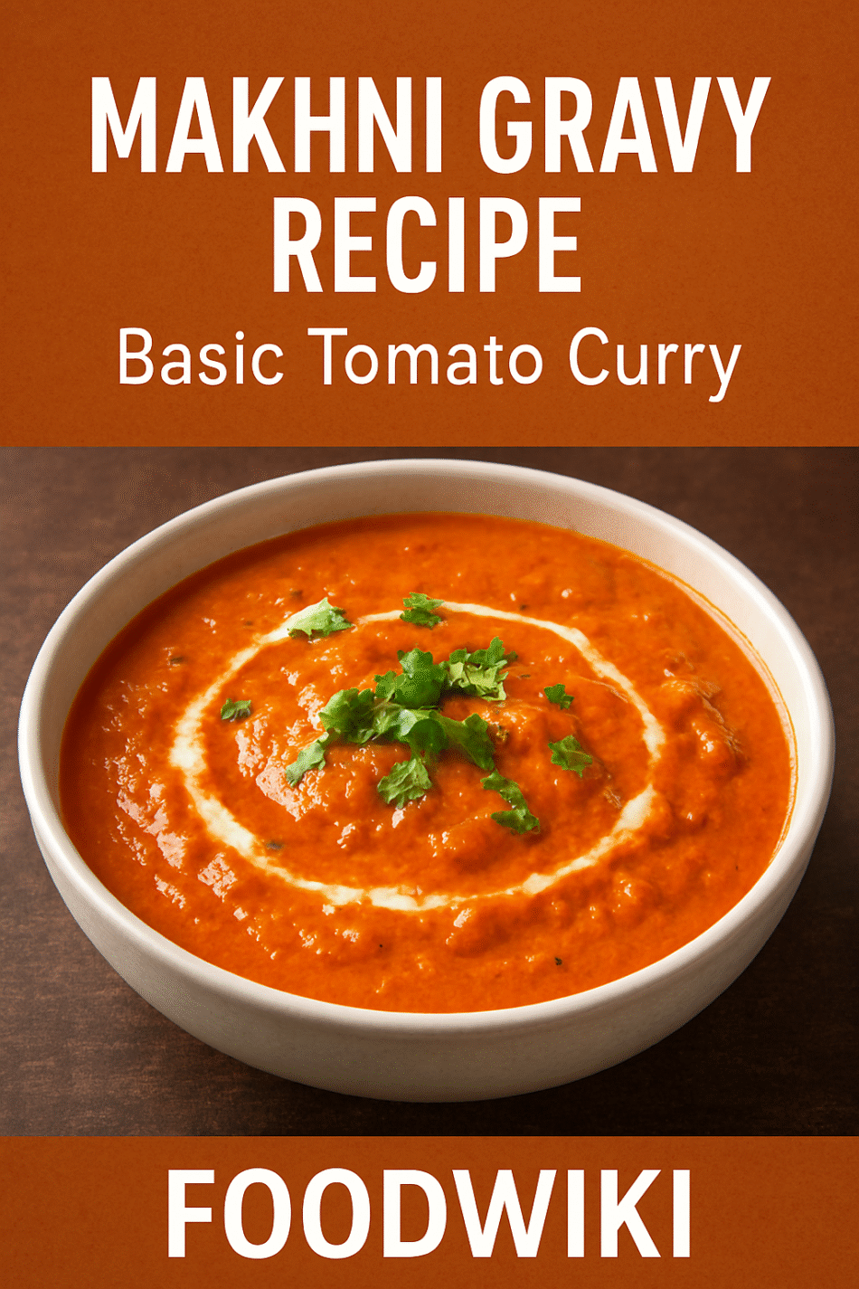 Makhni Gravy is a rich, buttery North Indian tomato-based curry used as a base for dishes like Butter Chicken and Paneer Makhni. It’s made by cooking tomatoes with ginger, garlic, cashews, and mild spices, then blending and straining for a smooth, creamy texture. Finished with butter and cream, it delivers a mildly sweet, velvety, restaurant-style flavor.