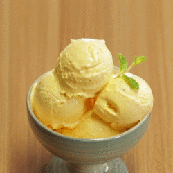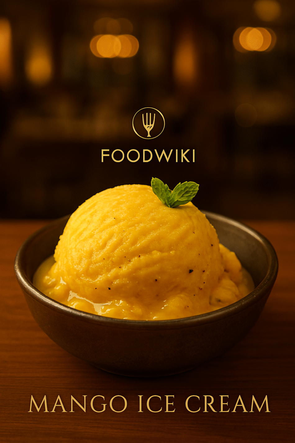 Mango Ice-Cream is a creamy and refreshing dessert made with ripe mango pulp, milk or cream, and sugar, churned or frozen to create a smooth, fruity treat perfect for summer.