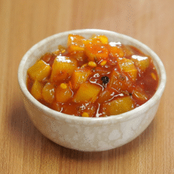 Mango Launji is a tangy and sweet Rajasthani condiment made with raw or semi-ripe mangoes, flavored with aromatic spices, and served as an accompaniment to Indian meals.