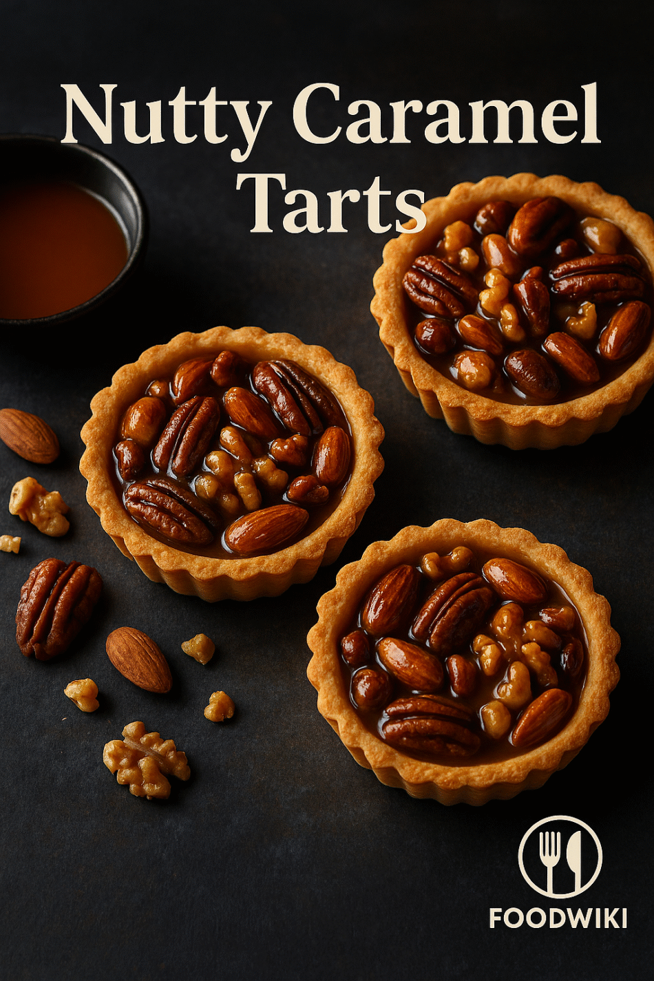 Delicious mini tarts filled with rich, buttery caramel and topped with a crunchy mix of roasted nuts, offering a perfect balance of sweetness and texture for a delightful dessert or snack.
