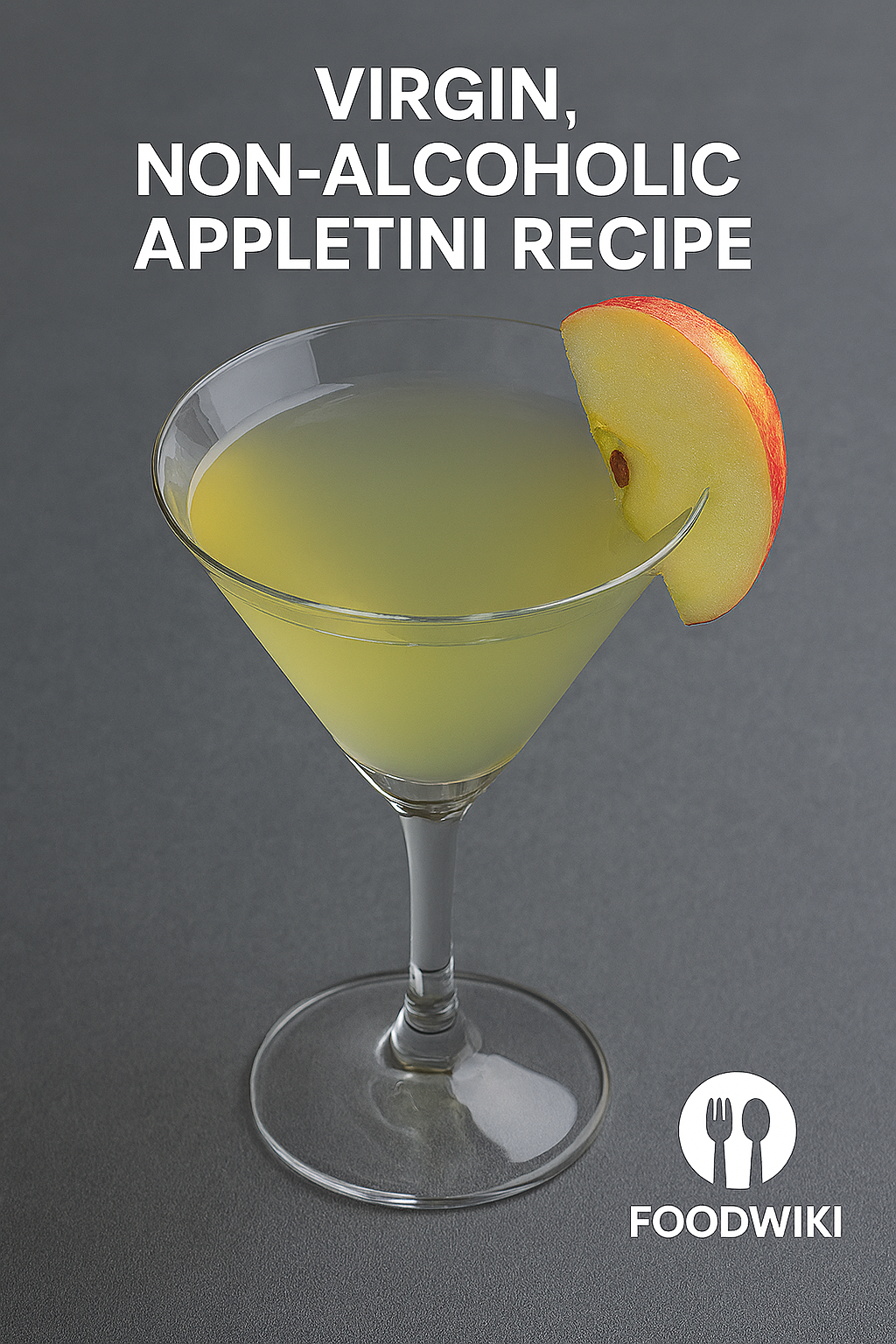 A refreshing and crisp mocktail made with fresh apple juice, lemon juice, and a hint of sweetness, served chilled in a martini glass. This non-alcoholic version of the classic Appletini offers a tangy-sweet flavor, making it perfect for parties, celebrations, or a light evening drink.